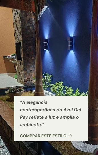 “A elegância contemporânea do Azul Del Rey reflete a luz e amplia o ambiente.”