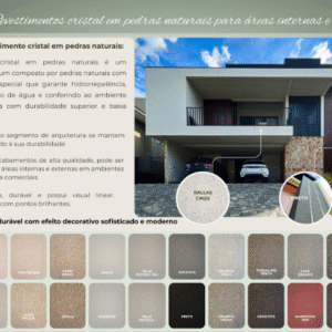 O Revestimento Cristal da Amais é um produto cujo os compostos são altamente duráveis, o revestimento proporciona um efeito decorativo moderno e sofisticado, sua aplicação pode ser interna e externa, mascarando eventuais irregularidades da pintura.